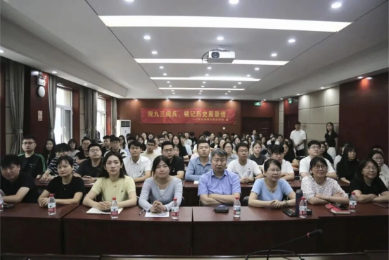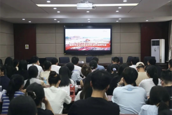 在观看过程中,党员们神情肃穆,认真学习习近平总书记的重要讲话,深刻感悟中国人民抗日战争的艰辛历程和伟大胜利的历史意义。“抗战胜利是全民族的觉醒,更是中国共产党领导人民走向复兴的起点。”院长胡海涛表示,“作为法学教育工作者,我们要把‘为党育人、为国育才’的初心刻进每一堂课,培养更多有信仰、有本领的法治人才。