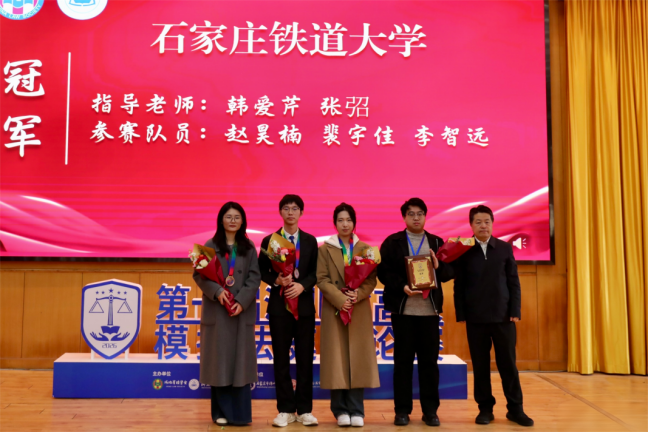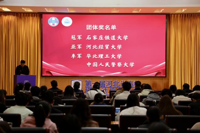 比赛严格按照真实庭审流程进行,评委从文书质量与庭审表现两个维度综合评分。经过初赛、半决赛的激烈角逐,石家庄铁道大学代表队与河北经贸大学代表队会师决赛。最终,石家庄铁道大学代表队荣获冠军,河北经贸大学代表队获得亚军,华北理工大学与中国人民警察大学代表队并列季军。赛事还评选出“最佳个人”“卓越个人”等奖项。