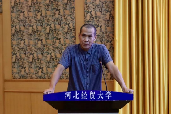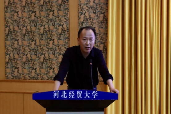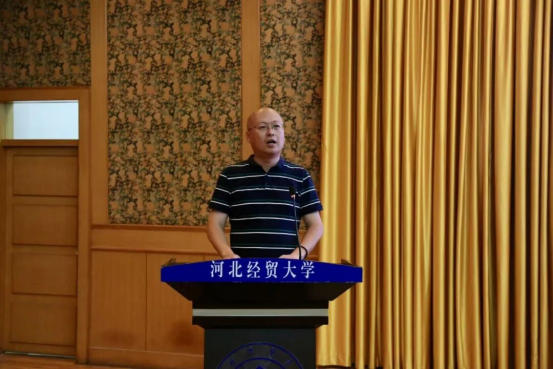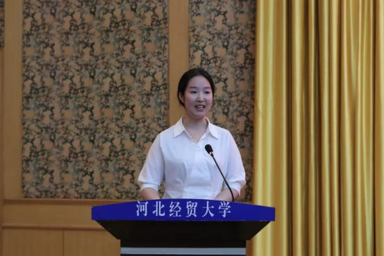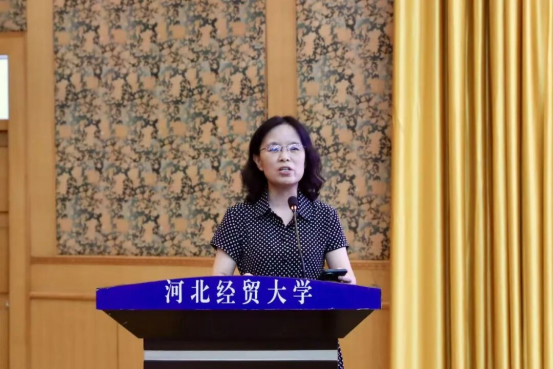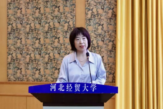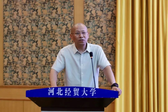 黄华首先代表法学院全体师生向2025级新生表示热烈祝贺与诚挚欢迎。她指出,法学院建院时间早、办学层次完整,2011年成为河北省首个法学一级学科硕士学位授予单位。不仅拥有民商法学、经济法学等核心学科,还布局数字法务产业学院、人工智能法学等交叉领域专业,师资汇聚国务院政府特殊津贴专家、全国知识产权领军人才等优秀力量,并依托国家级、省级实践教学基地及与80余个地市法院、检察院共建的实践平台为学生提供从理论到实务的全链条支持;同时提及近年研究生在法律职业资格考试、模拟法庭竞赛、“挑战杯”及考公考编中屡创佳绩。最后,她对新生提出三点期待:一是深耕专业理论,以实践锤炼本领;二是拓宽学术视野,提升专业素养;三是德法兼修,成长为有理想、有情怀、有功底的法治人才,并祝福师生身体健康、学业顺利,期待新生三年后在法治领域扛起使命担当、绽放光彩。