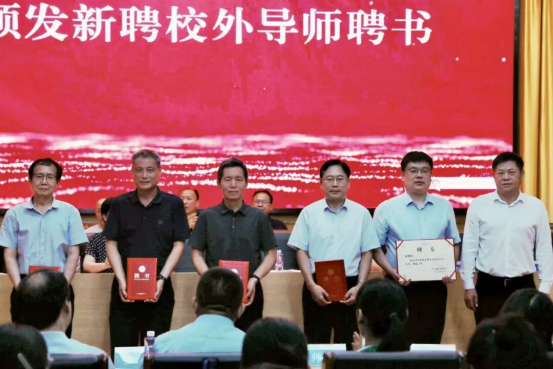 任成印教授向全体与会人员介绍李明、张兆平、马章民、张永泽、李闯五位新聘校外导师的专业背景与行业成就,杨金田为新聘校外导师逐一颁发聘书。资深法律人才加入法学院,不仅能丰富学院的教学与科研体系,更能为学生提供贴近行业前沿的学习指导与实践机会,为法学院进一步提升人才培养质量、推动法学学科发展奠定坚实基础。