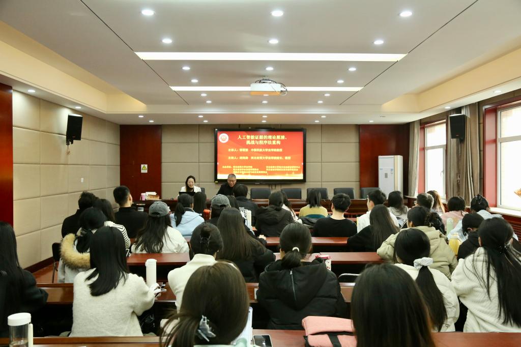 11月24日,法学院邀请中国民航大学法学院长聘教授、硕士生导师,中国法学会民事诉讼法学研究会常务理事郭雪慧,以“人工智能证据的理论厘清、挑战与程序法重构”为题作学术报告。报告由法学院副院长张亮主持,法学院70余名学生到场聆听。