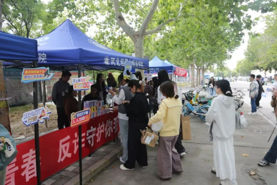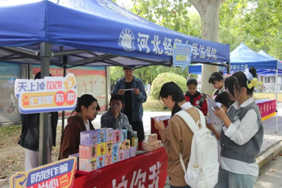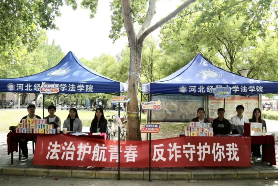 2025年9月22日,法学院研究生学生会于河北经贸大学韶华路旁开展主题为“开学反诈第一课”的普法宣传活动。活动以“法治护航青春,反诈守护你我”为核心,通过普法宣传和知识答题的双环节设计,吸引众多在校学子参与。
