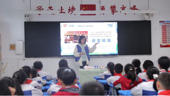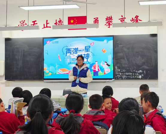 紧接着,志愿者通过科普视频,生动讲解了“核”在军事与生活中的应用,让孩子们更加理解核技术对国家和社会的重要意义。在最后的知识竞赛环节中,同学们积极回答关于“两弹一星”精神和功勋人物的问题,童稚而坚定的声音中流露出对科学知识的渴望。这不仅是一次历史回顾,更是在孩子们心中深深埋下了科学与爱国的种子。