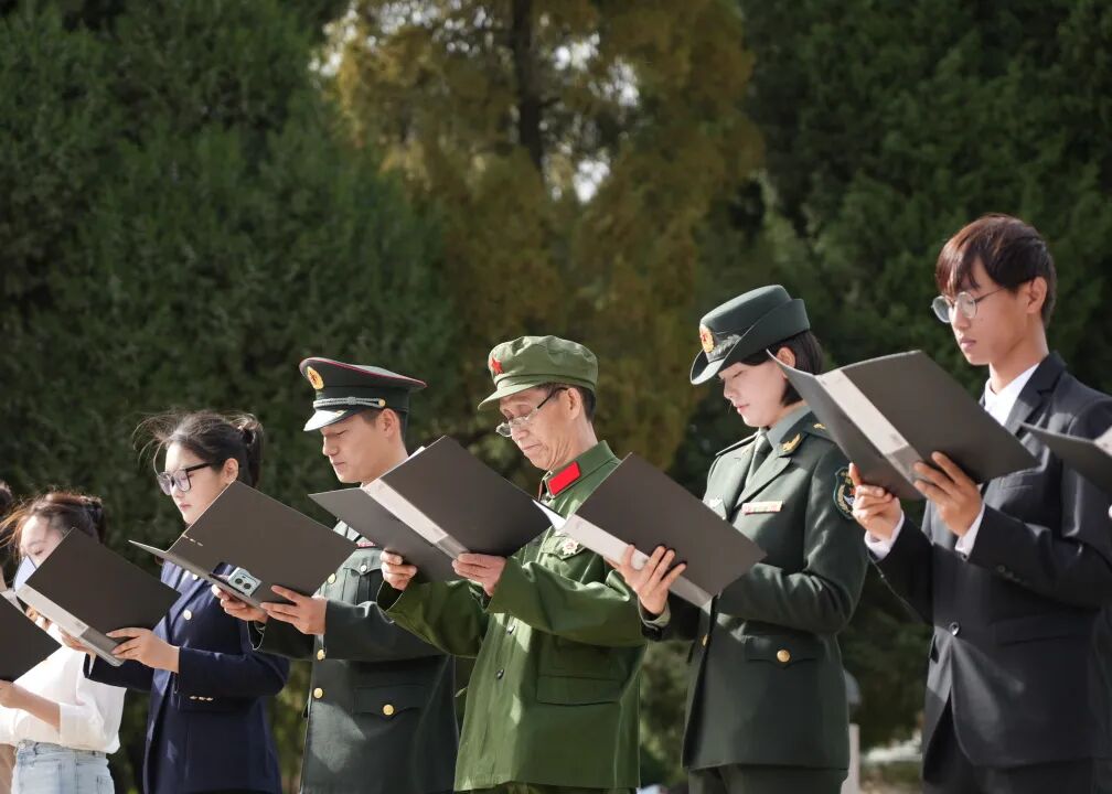 各校代表身着素装、神情肃穆,进行红色主题集体朗诵,用饱含深情的声音抒发对革命英烈的敬仰与追思,传递赓续红色血脉的坚定信念。