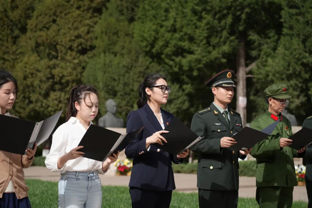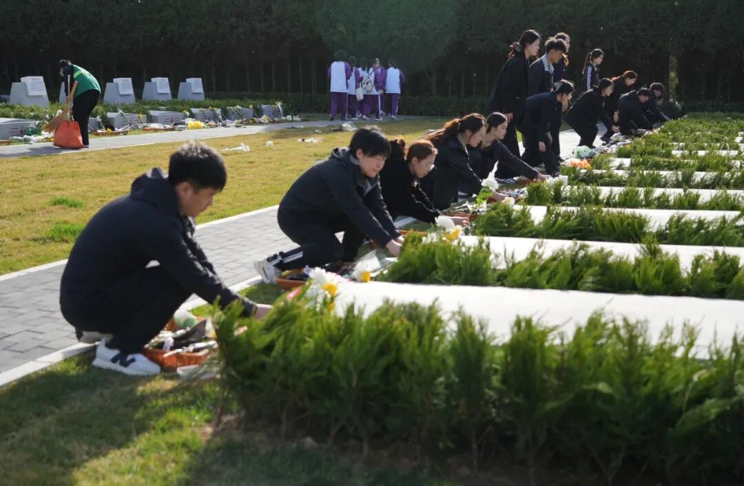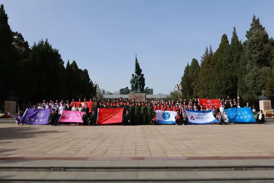 为深切缅怀革命英烈,传承红色基因,厚植家国情怀。4月3日下午,河北经贸大学法学院联合陆军工程大学(石家庄校区)、河北科技大学、河北医科大学、河北师范大学、河北工程技术学院、河北美术学院六所高校及石家庄市石岗大街第二小学、高新区第一小学两所小学,携手10名参战老兵代表,赴华北军区烈士陵园开展“缅怀革命英烈 赓续红色血脉 厚植家国情怀”清明祭祀活动,以庄重的仪式追思英烈事迹,凝聚奋进力量。法学院党委书记黄华、团委书记梁贺超带领16名研究生参与本次活动。