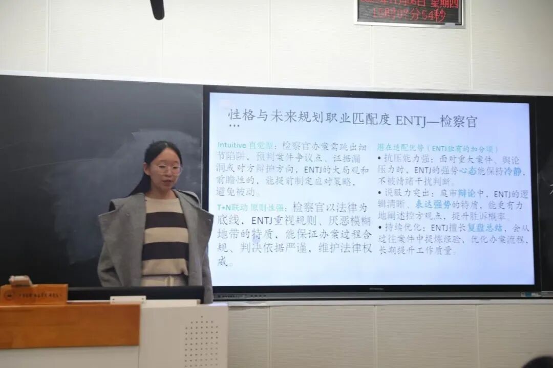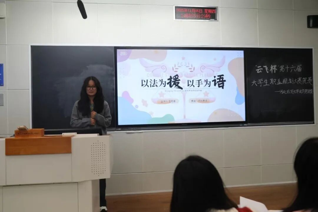大赛尾声,法学院团委副书记李佳薇作总结点评。她肯定了本次大赛亮点,指出多数参赛PPT重点突出、职业目标明确;同时建议同学们挖掘地域特色、夯实调研背景,让规划更具落地价值。