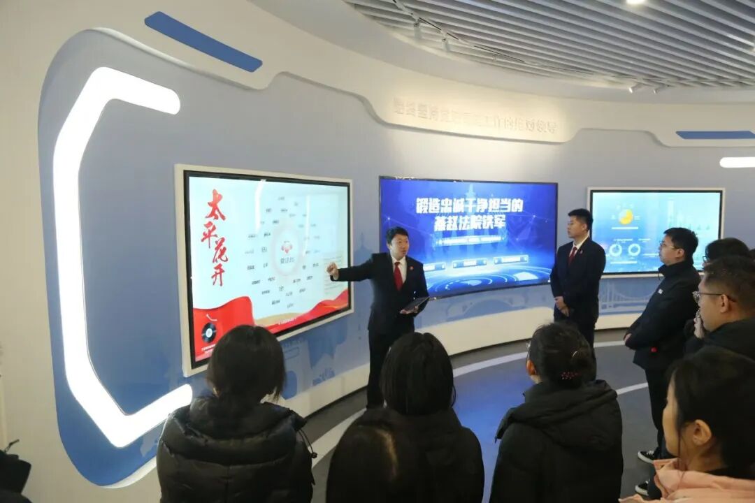 活动中,我院师生先后探访网上立案处、12368 热线接待室,通过工作人员实务讲解,深入了解 "前台申请、中台处理、后台保障" 的智慧诉服全链条运行逻辑;在立案大厅,详细知晓 "一站式" 诉讼服务体系,切身感受 "让数据多跑路、让群众少跑腿" 的司法理念;步入院史馆,老照片、实物与文字记录再现河北法院数十年发展轨迹,从建国初期司法实践到新时代法治建设成就,从马锡五审判方式传承到 "枫桥经验" 本地化发展,让现场师生深刻认识到法治建设的不易与宪法法律的生命力。在融媒体服务中心参观节目录制室与新媒体编辑室时,部分学子坐上主播台体验法治节目录制,直观地感受司法公开的温度与力度。